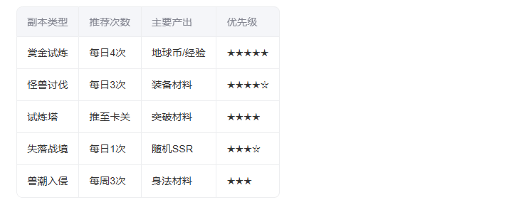 特别提醒:试炼塔每10层有质变奖励,建议集中资源培养1-2个主力推塔;兽潮入侵的SP装备掉率极低,不必强求。